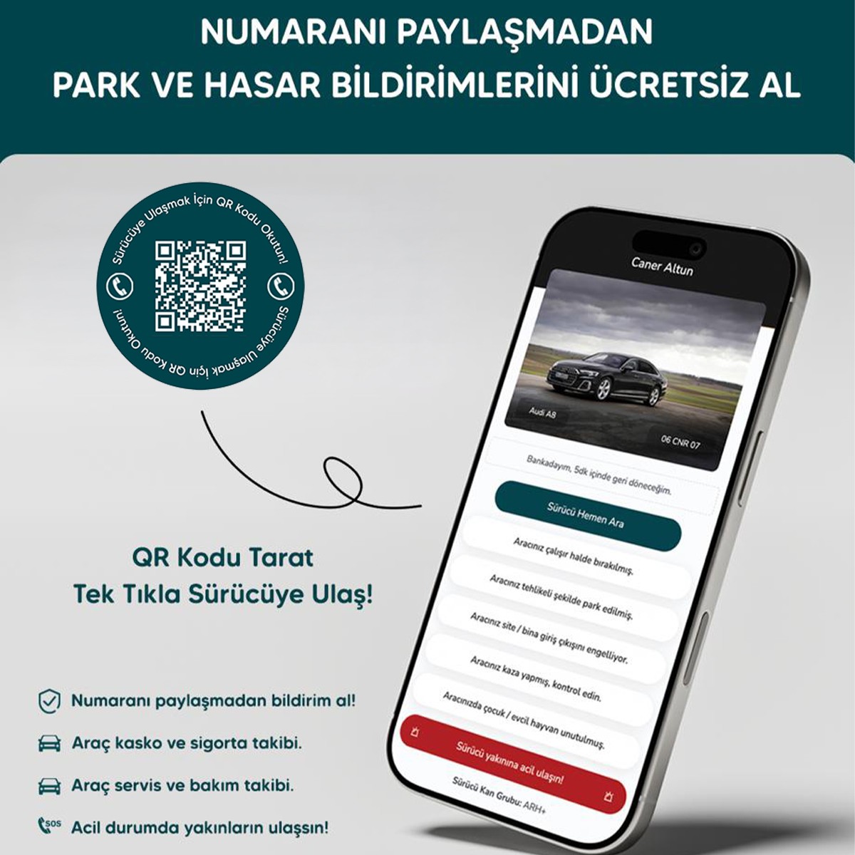 Kullanım Alanı: Park bildirimi, hasar bildirimi, araç sahibi ile iletişim