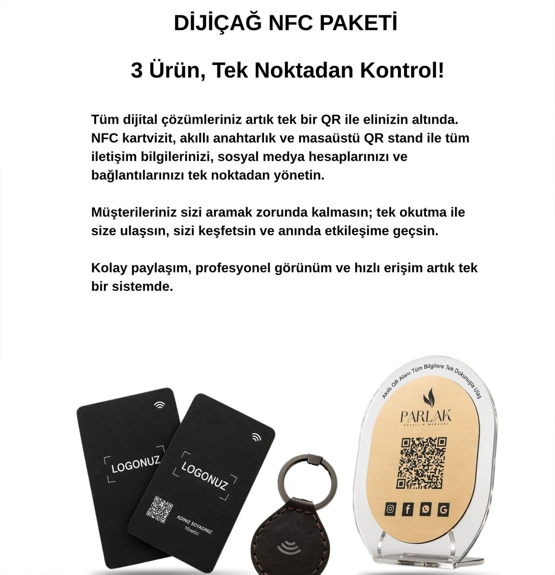 DijiÇağ NFC 3’lü Paket ile tüm dijital kimliğinizi tek noktadan yönetin, müşterilerinize hızlı ve etkili bir deneyim sunun.